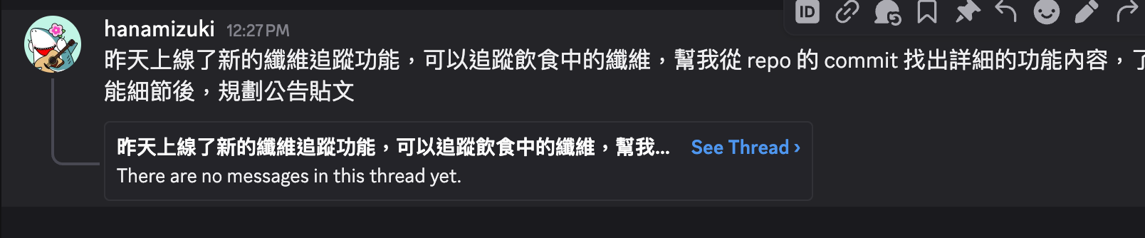 我想要一個功能:讓 Discord 頻道裡的每一則新訊息,自動建立一個 thread。這樣每個問題進來,agent 就會自動幫我開一個乾淨的 session,不用手動處理。我還希望我發訊息之後,agent 在建立 thread 時能自動命名。