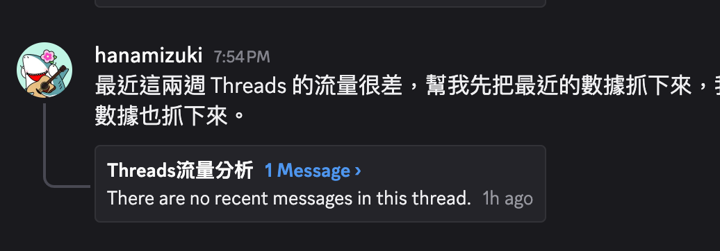 症狀是這樣的。Auto-Thread 建立了,但 thread 的名稱遲遲沒有更新,始終是原始訊息。看不出有任何錯誤,但 rename 就是沒有發生。